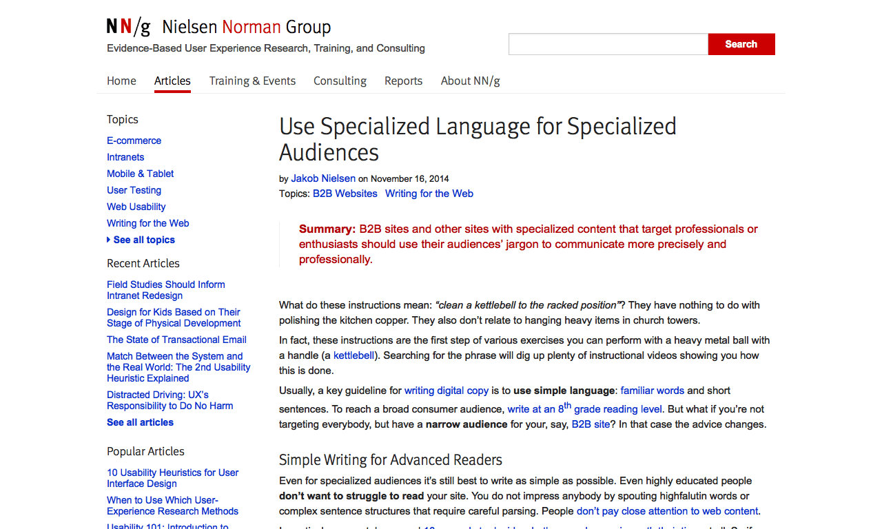 Use Specialized Language for Specialized Audiences – Nielson Norman Group